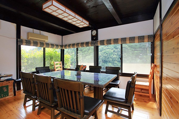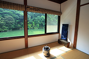 2階には和室・板の間・広縁があり、貴志川を見下ろす眺望と対岸の緑が素晴らしい借景になっています。