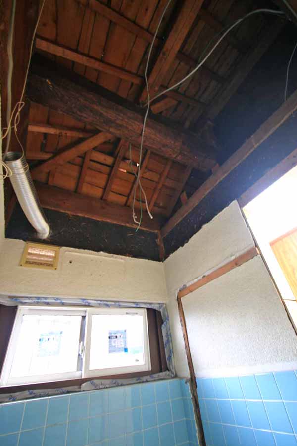 浴室をスケルトンにしたら、立派な丸太の梁が現れました!