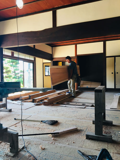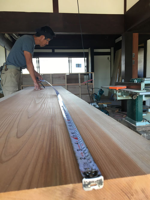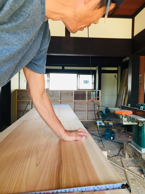 キッチンのダイニングテーブルになる予定の板。