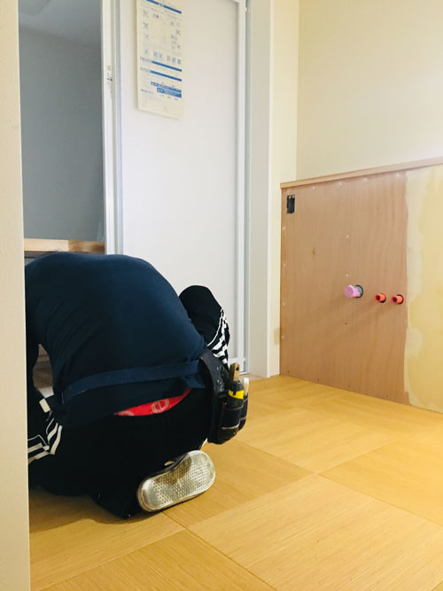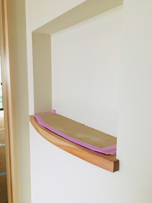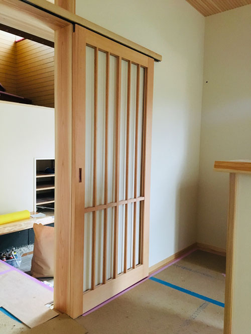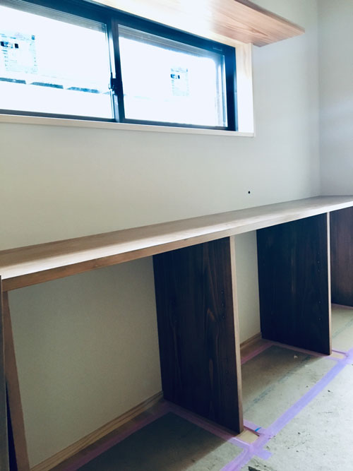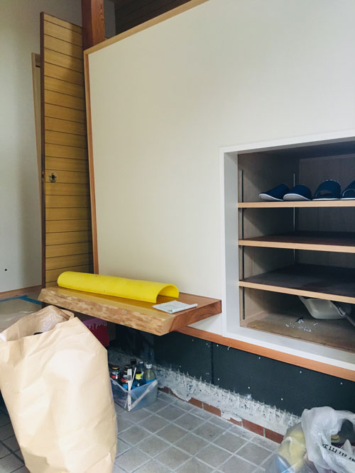 2020.10.24 和歌山市木ノ本T様邸リノベーション #06 古民家 和歌山リノベーション 岩出市リノベーション 紀の川市リノベーション 和歌山市木ノ本T様邸も順調に進む今日このごろです。 建具がとてもいい感じです✨ 趣があってそれでいて軽やか。 キッチンも落ち着いたブラウンの色味。 造作の棚も「シンプル」で使い易そう。 洗面の床が貼られていました。 近頃人気のクッションフロアの籐。 踏み心地がいいんです。 こちらはトイレなのですが、施主様やまた お孫様で塗られたようで、渋い雰囲気が溢れています。 憧れの玄関ニッチ。 玄関を演出してくれます。 階段下には収納と一枚板のベンチが、 靴の脱ぎ履きをお手伝い。 明日が楽しくなる、暮らし。 SUETAKA RENOVATION