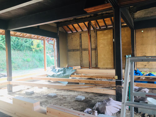 2020.11.20 和歌山市冬野K様邸リノベーション#12 古民家 和歌山リノベーション 岩出市リノベーション 紀の川市リノベーション 朝の和歌山市冬野K様邸にて。 朝は少し寒いですが、南が抜けていて日当たりがよく暖かいです。 浴室部分の土台が完成していました。 建物東側からの撮影です。 差し込む朝陽がやわらかく気持ちがよいことでしょう。 建具が印象的でノスタルジック。 細かく区切られていた和室、 大きなリビングダイニングキッチンへと変わります。 これから先も、民家の美しさを受け継ぐ リノベーションが増えてほしいものです。 それぞれの暮らしに合わせてリノベーション。 SUETAKA RENOVATION