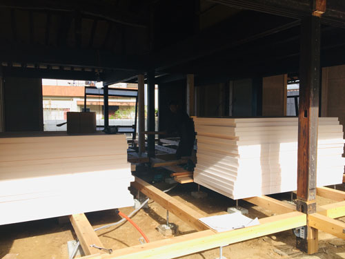 2020.12.13 和歌山市冬野K様邸リノベーション#14 古民家 和歌山リノベーション 岩出市リノベーション 紀の川市リノベーション 和歌山市冬野K様邸にて。 現場も寒くなりました。 ここに格子がはまる様子です。 古民家の魅力をより引き出し、補強も一躍担ってくれます。 新しい材をカットし既存のものとが合わさるとき リノベならではの建具の美しさを感じる今日このごろです。 沢山届いた材料たちは まるで大工さんに触れられるのを待っているかのようでした。 SUETAKA RENOVATION