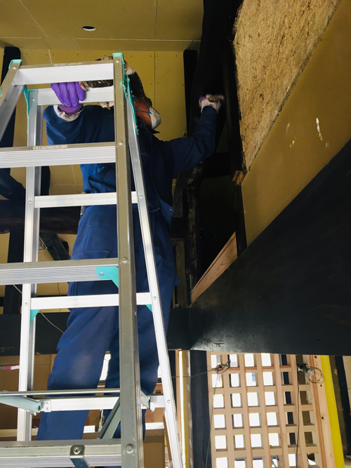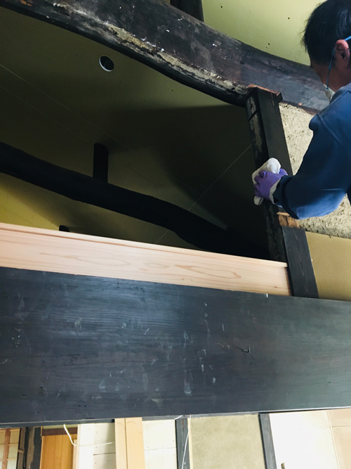 塗装前に梁等を綺麗にしてゆきます。
