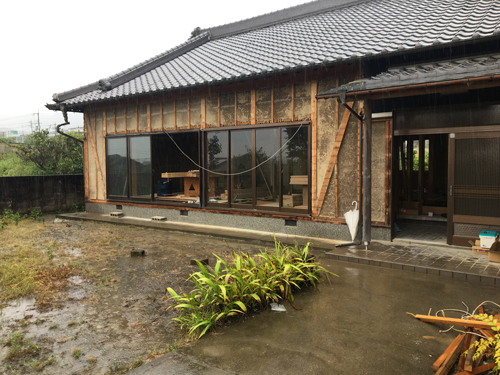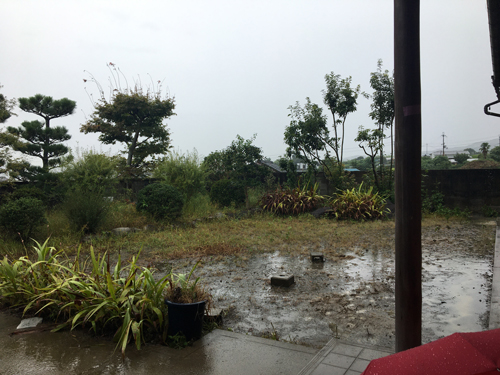 あいにくの土砂降りですが、玄関からも遮るものが無く