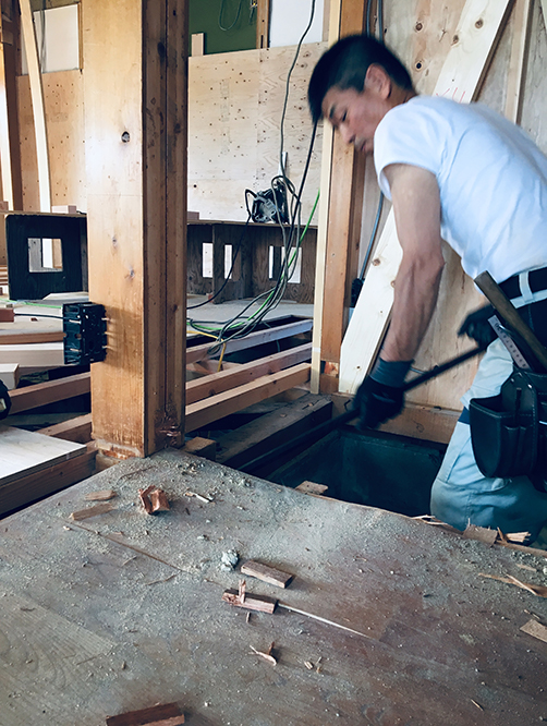 床を剥がしていました。