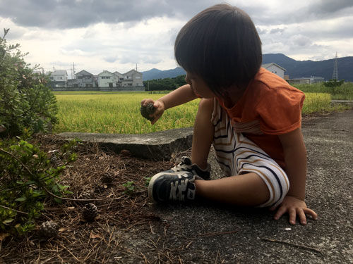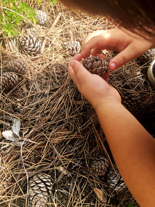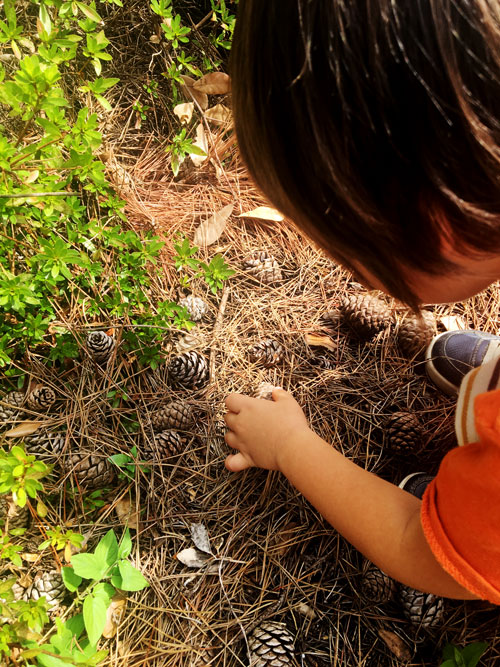 敷地の中にたくさんのまつぼっくり。