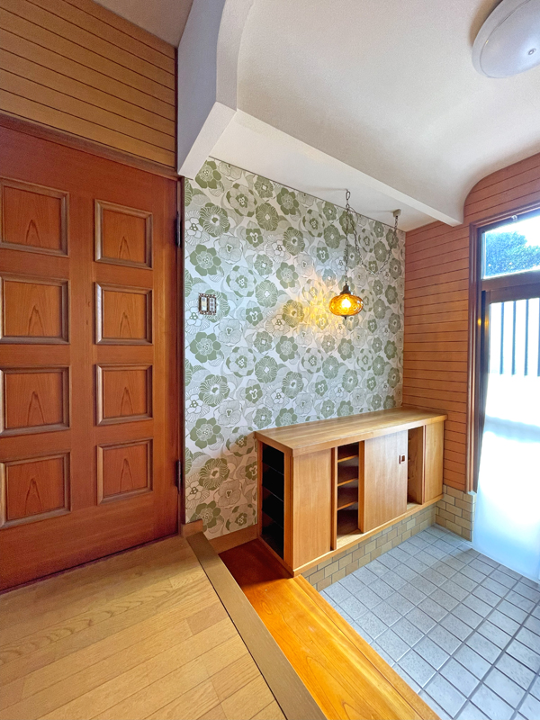 クロスを貼り替えただけの玄関が、ぐっとオシャレな印象に♪