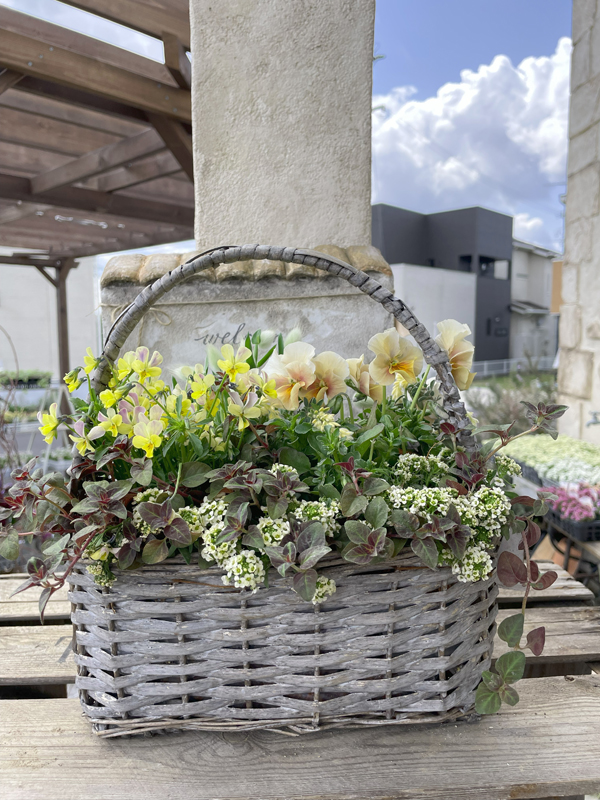バスケットに植え込まれた寄せ植えもカワ(・∀・)イイ!! センス抜群ですね♪