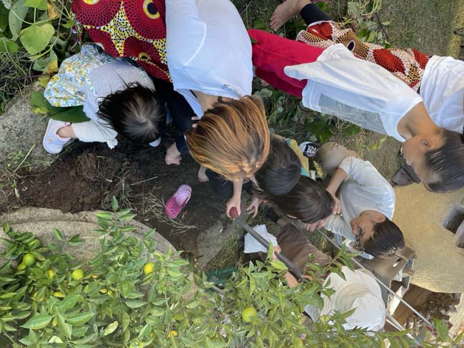 こちらでは芋ほり合戦。子供たちが楽しそうにお芋さんを掘ります。