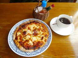 お店の一押しは「たなべえサンド」。2人で来たのでたなべえサンドと手造りピザパイを注文してシェアしました。