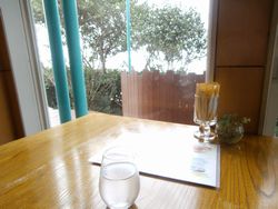 店内に入るとまずコーヒーの芳しい香りを感じながら席へ。テラス越しに海が見える窓際のテーブルが空いていてラッキーでした。